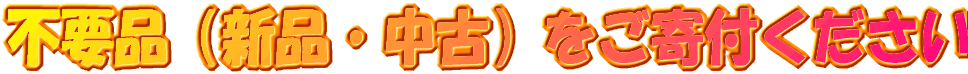 | お中元お歳暮などの贈答品、不要小物、不要日用品をご寄付ください | ⇒ | フリマで販売し、現地を支援する資金や、物資輸送の費用、グループ運営の資金にあてます。 |